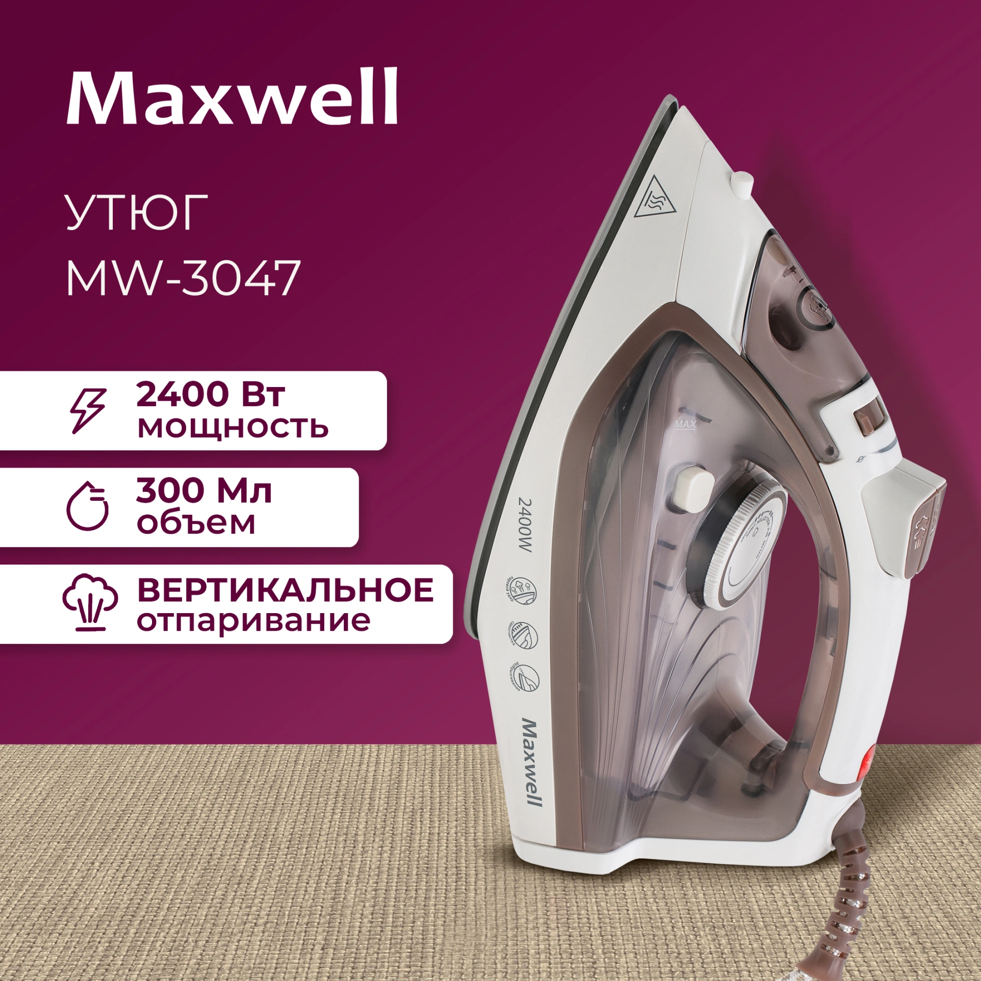 | Цвет утюга | белый/коричневый |