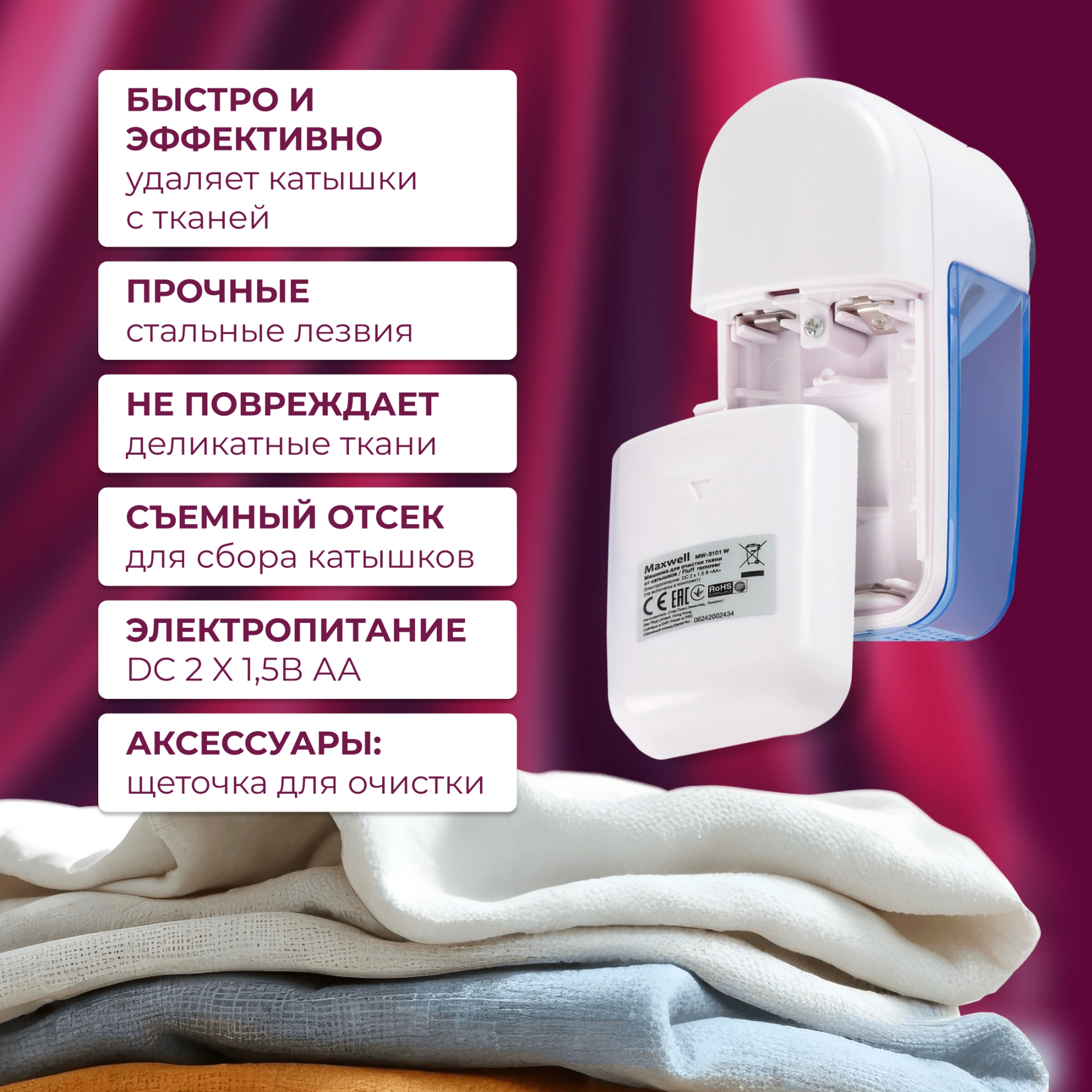Машинка для снятия катышков Maxwell MW-3101 белый